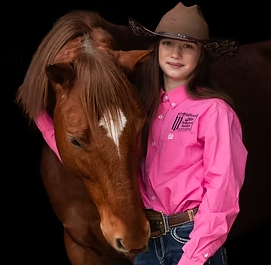 Dakota is fearless and loves speed! She is all or nothing when it comes to horses and rodeo. Practices every single day with her brother Morgan no matter what